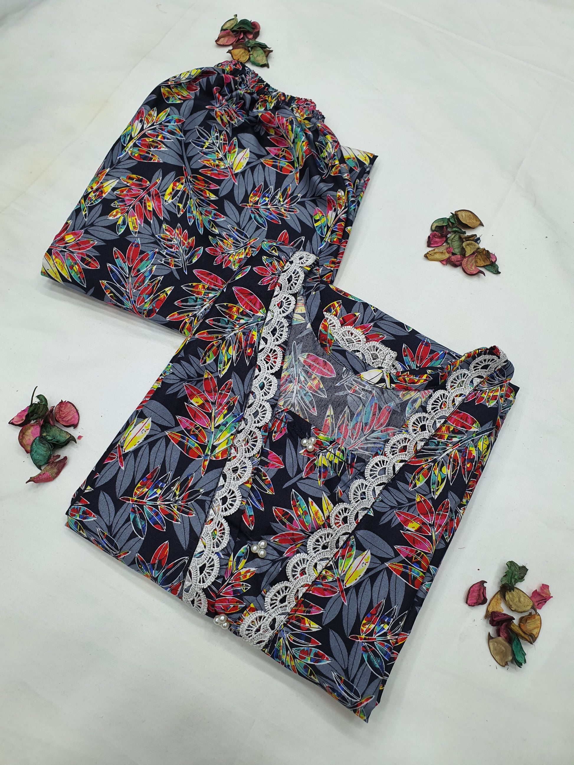 Cotton 2-Piece Stitched Set with Elegant Lace Detailing – Long Length Outfit (14)