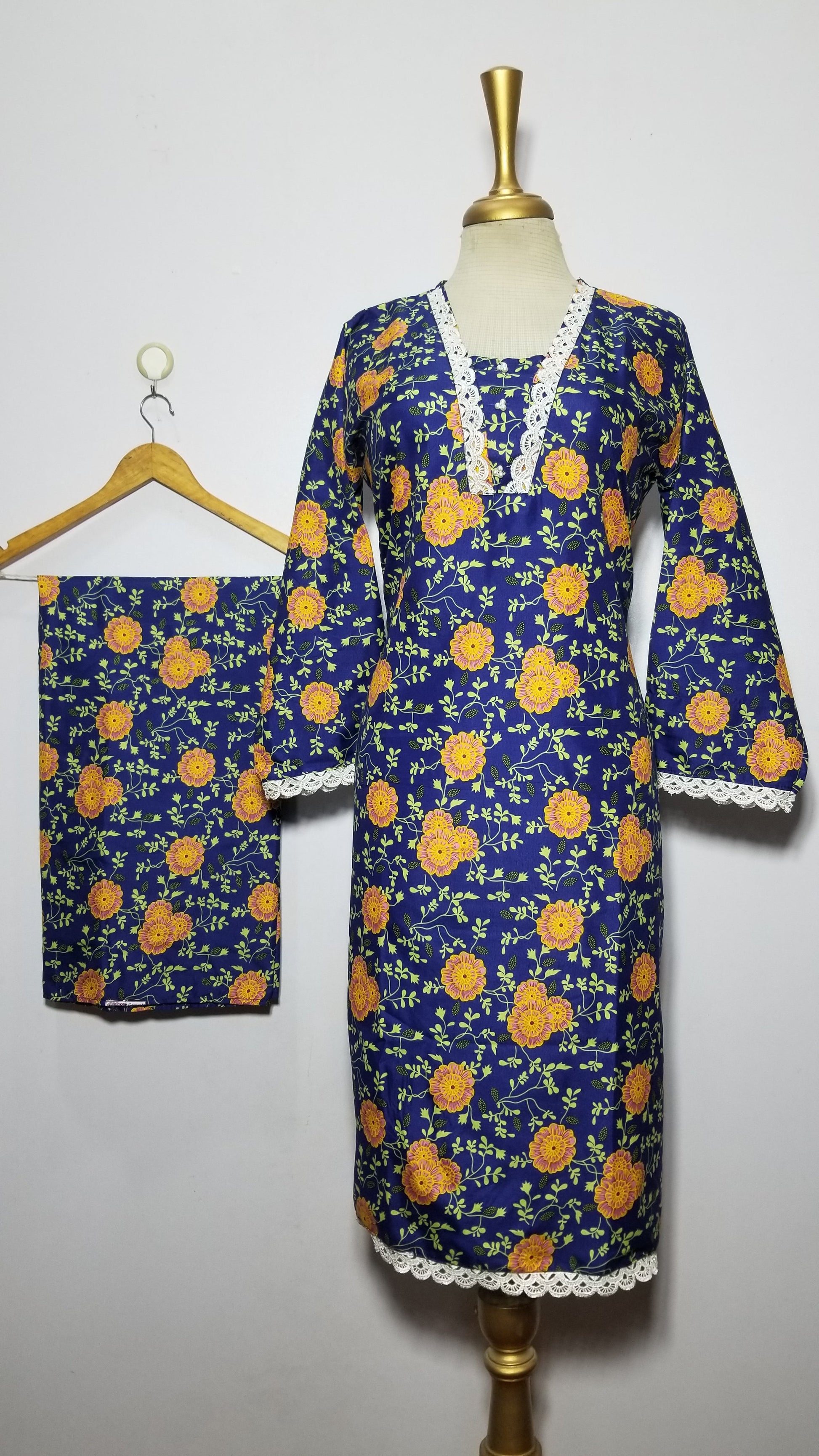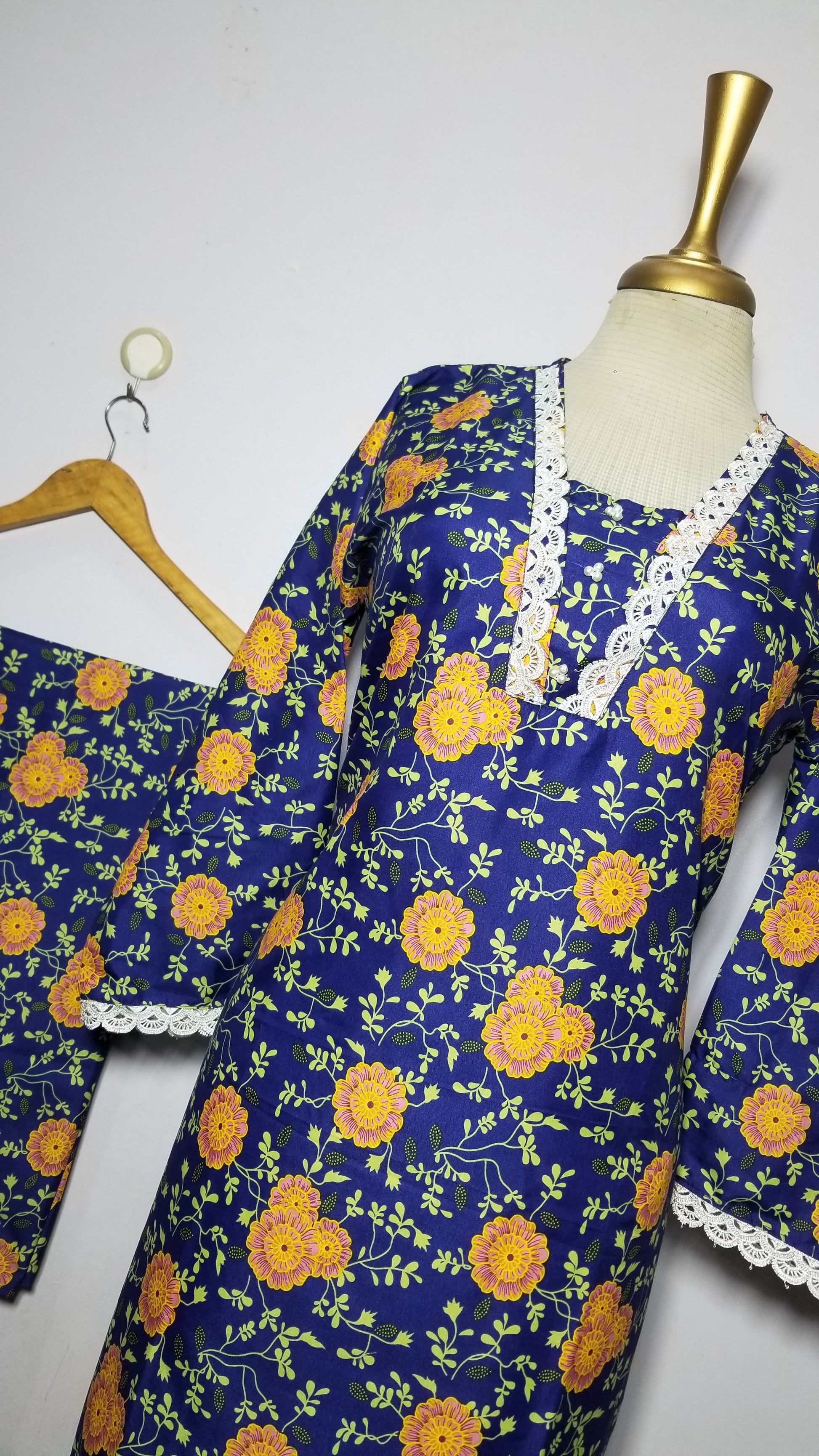 Cotton 2-Piece Stitched Set with Elegant Lace Detailing – Long Length Outfit (15)