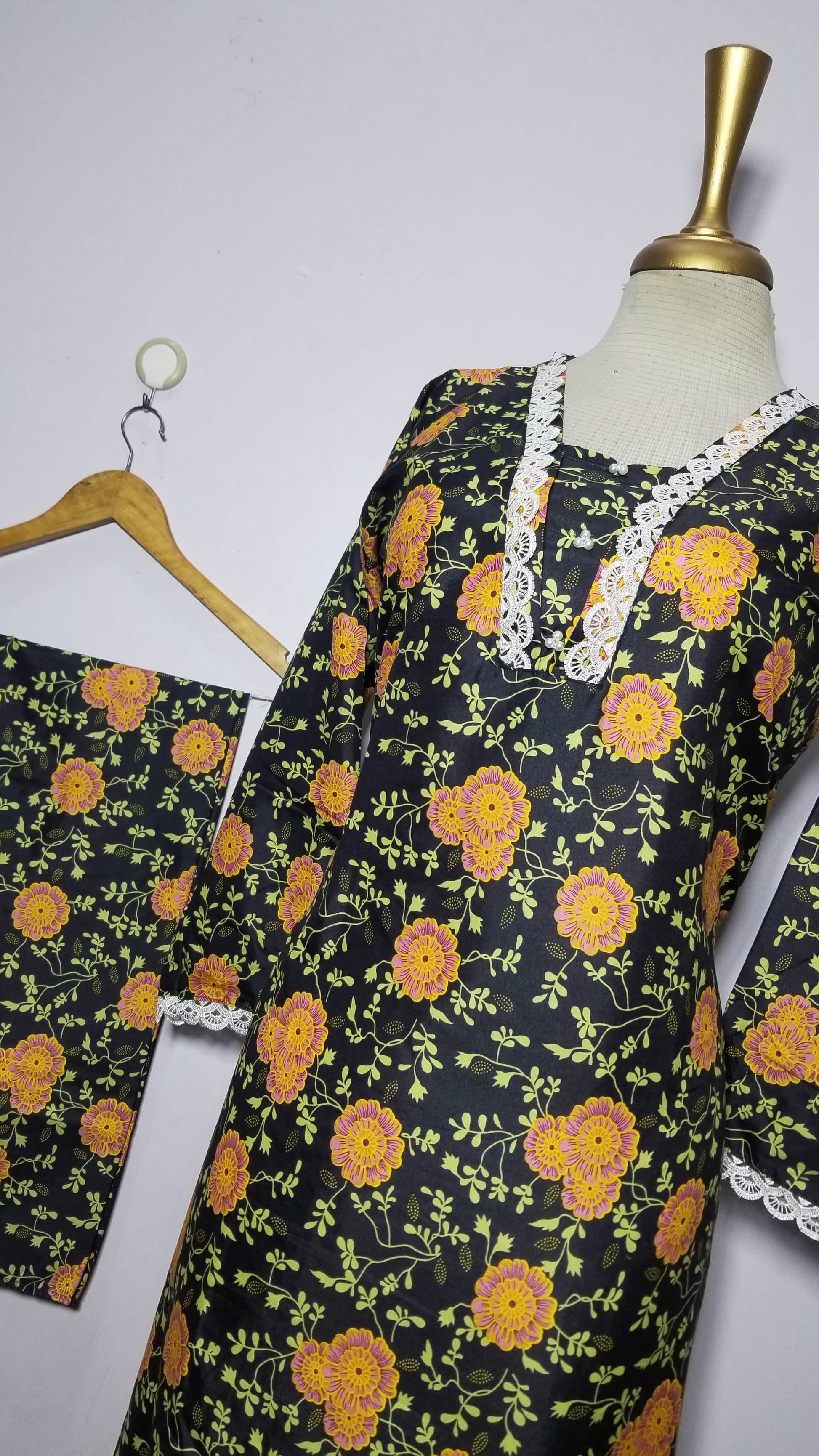 Cotton 2-Piece Stitched Set with Elegant Lace Detailing – Long Length Outfit (20)