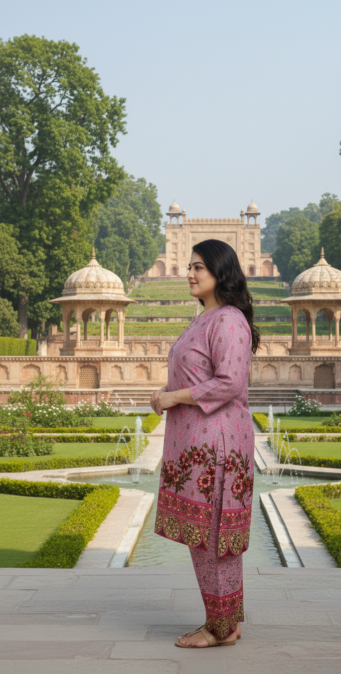 This elegant large-size outfit features soft printed linen fabric that’s perfect for the chilly season β€” stylish, breathable, and easy to wear for everyday looks or casual gatherings.