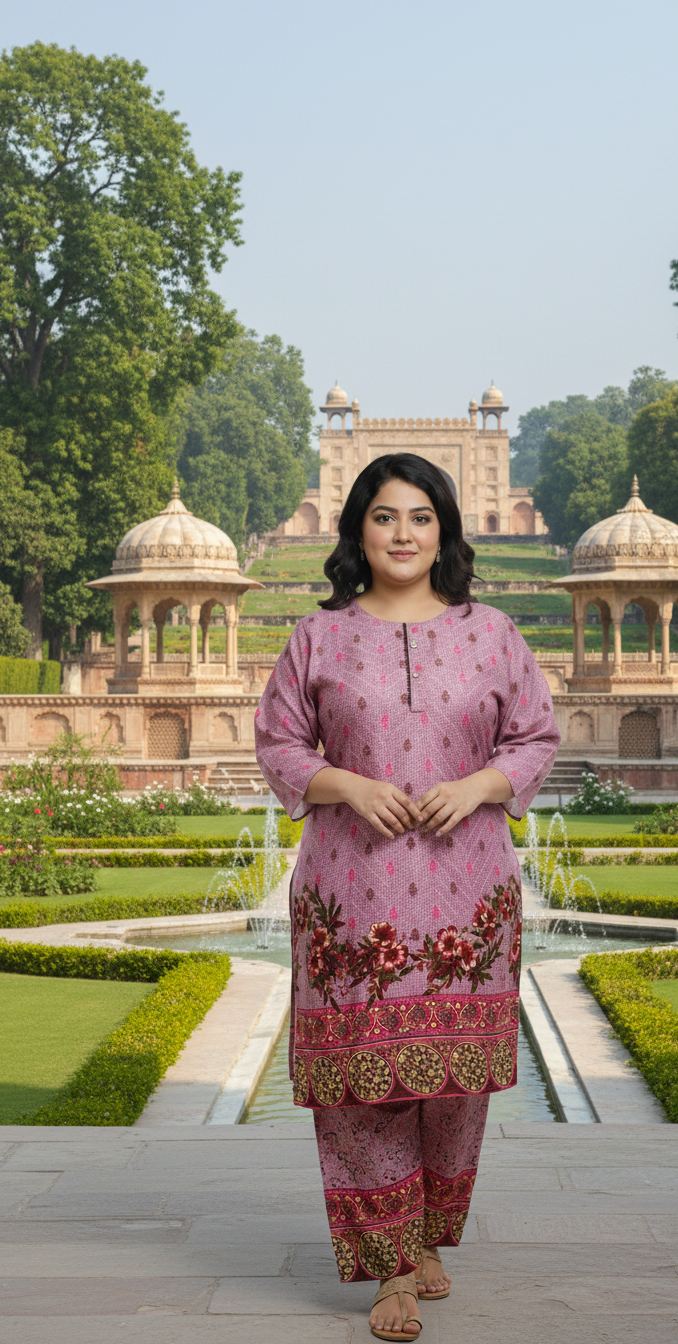 Upgrade your winter wardrobe with our Stitched Printed Linen 2-Piece Suit, designed for comfort and style.