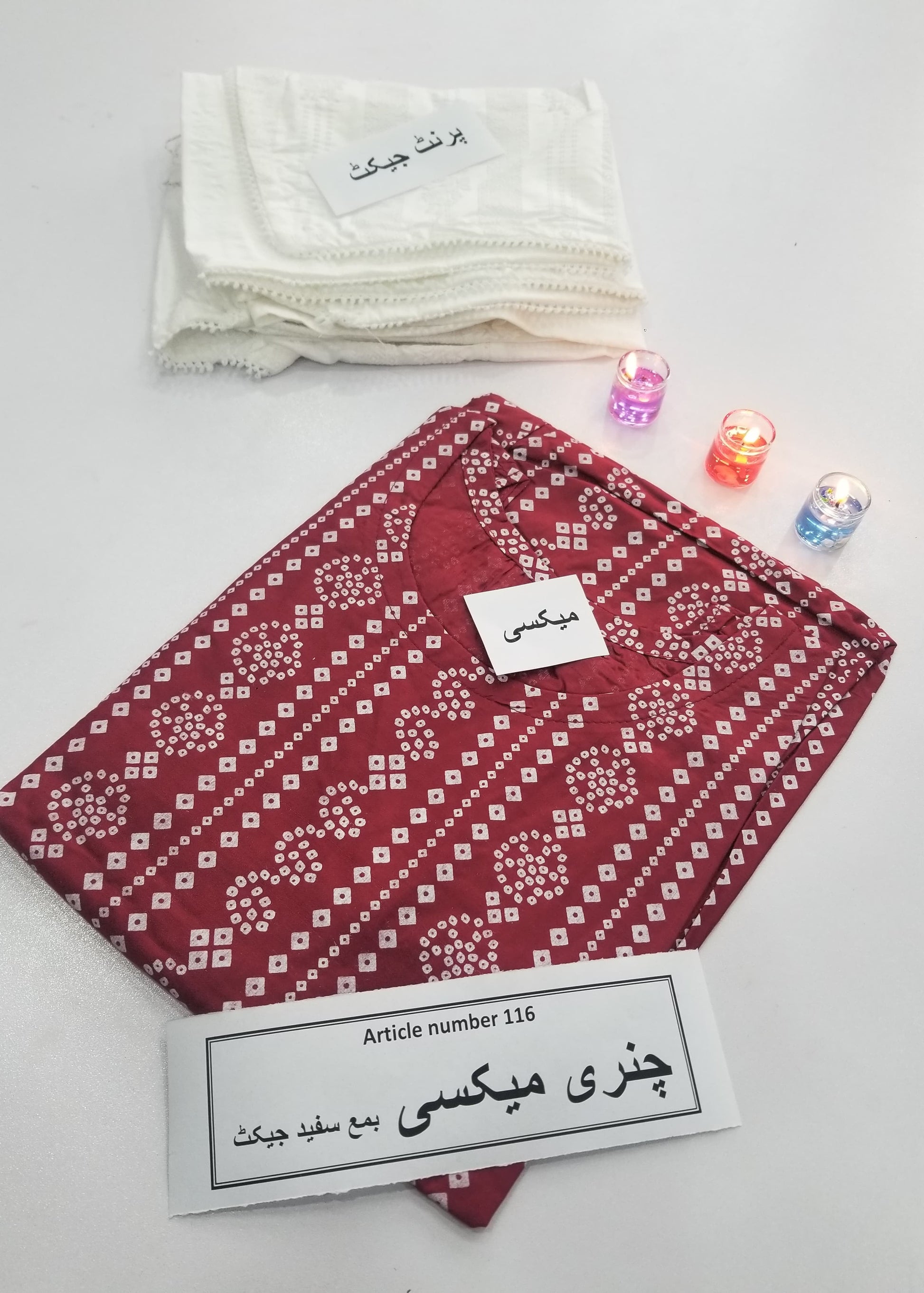 The frock is complemented by a premium white self-foamic jacket, adding a touch of luxury to the look. The delicate texture of the jacket is paired with a crisp white color, creating a beautiful contrast with the vibrant hues of the frock. The jacket provides just the right amount of coverage while allowing you to maintain a breezy, summer-ready vibe.