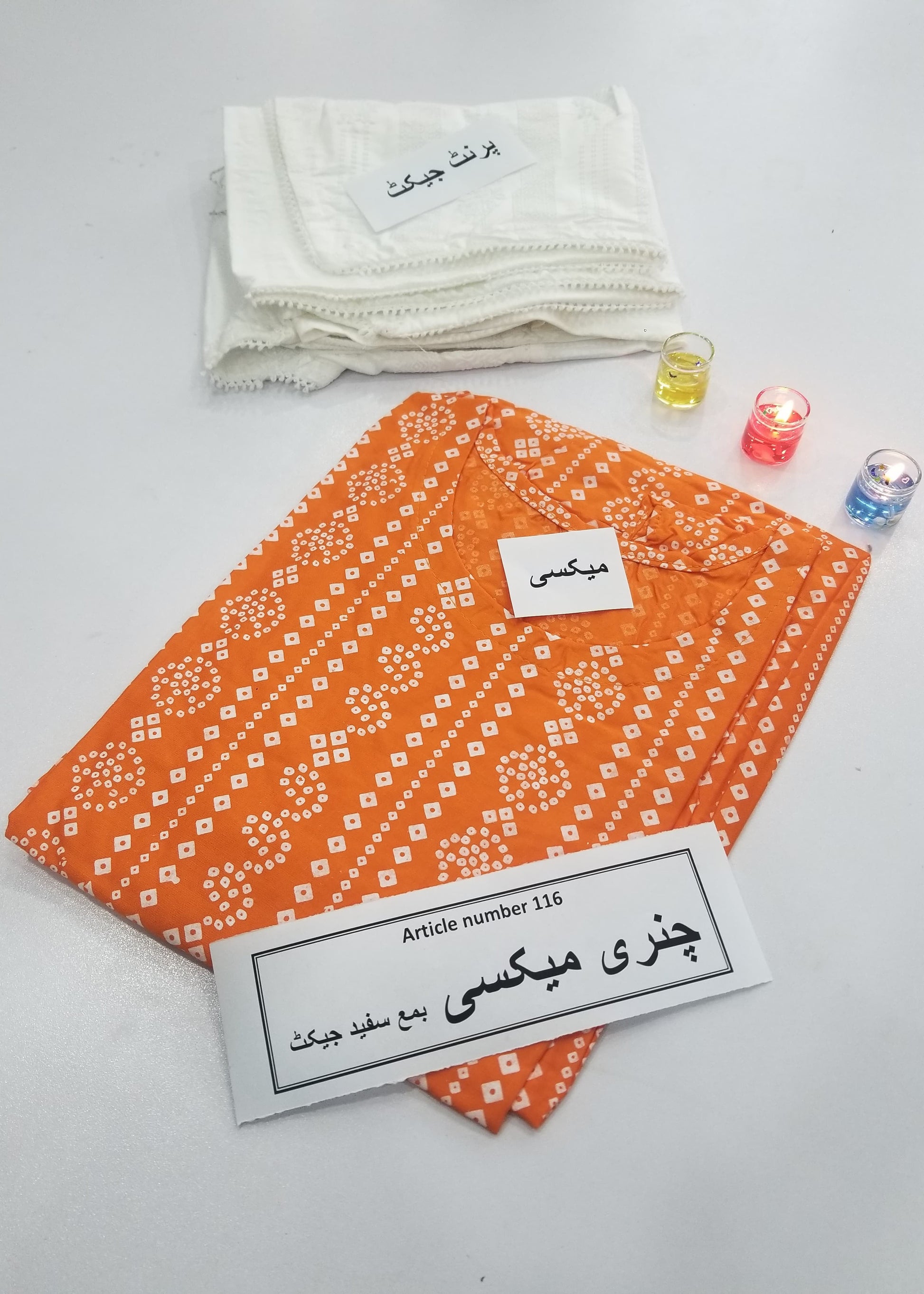 The frock is complemented by a premium white self-foamic jacket, adding a touch of luxury to the look. The delicate texture of the jacket is paired with a crisp white color, creating a beautiful contrast with the vibrant hues of the frock. The jacket provides just the right amount of coverage while allowing you to maintain a breezy, summer-ready vibe.